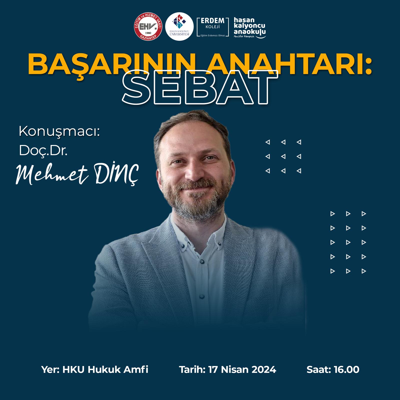 Vakfımızın geleneksel bursiyer buluşmaları kapsamında ; 17 Nisan 2024 Çarşamba günü saat ; 16 : 00’ da, Hasan Kalyoncu Üniversitesi Hukuk Amfi’ de, Doç. Dr. Sayın ; Mehmet DİNÇ’ in katılımı ile düzenleyeceğimiz “Başarının Anahtarı : Sebat” konulu konferansımıza, bütün halkımız davetlidir.